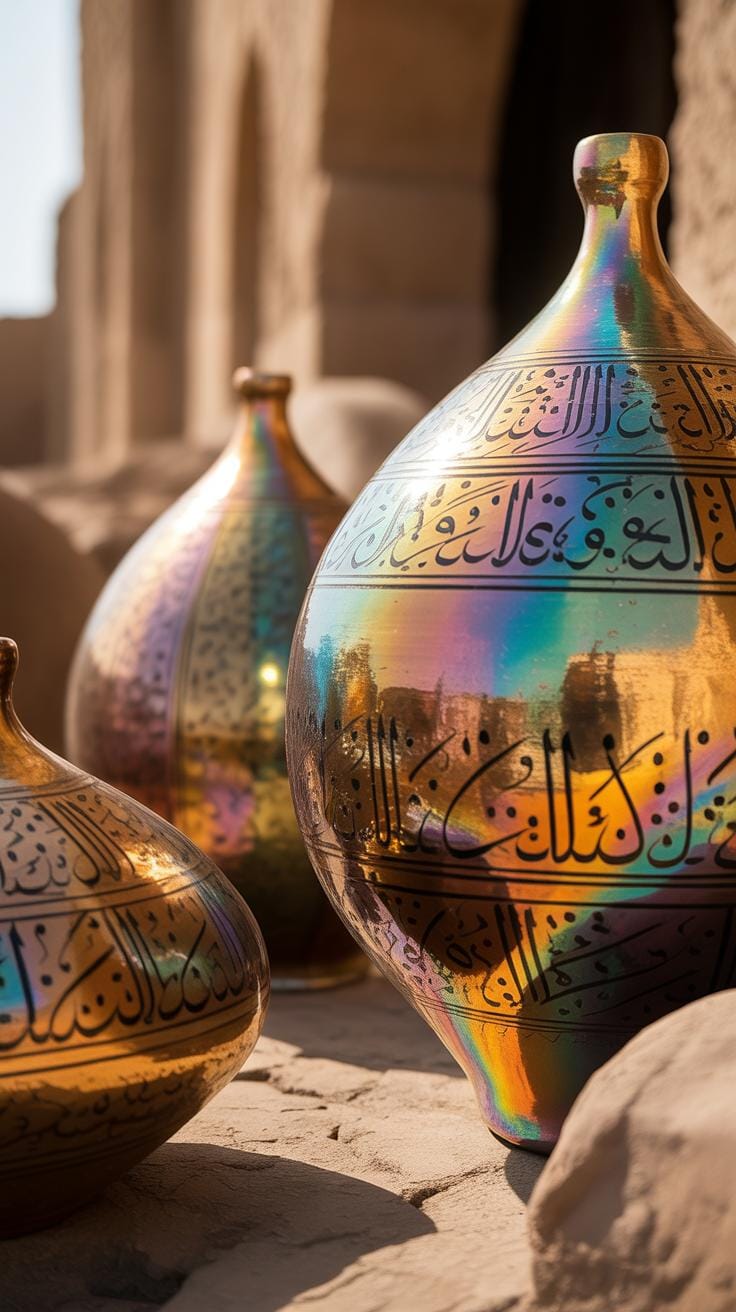 During the Abbasid Caliphate, ceramic artisans achieved a revolutionary breakthrough that transformed pottery into luminous treasures. Metallic glazes emerged through sophisticated experimentation, creating surfaces that caught and reflected light like captured gold. These lustrous finishes resulted from applying metallic oxides during a third firing process at lower temperatures. The technique produced an iridescent sheen that seemed to glow from within the clay itself, making ancient pottery stories come alive through shimmering surfaces.