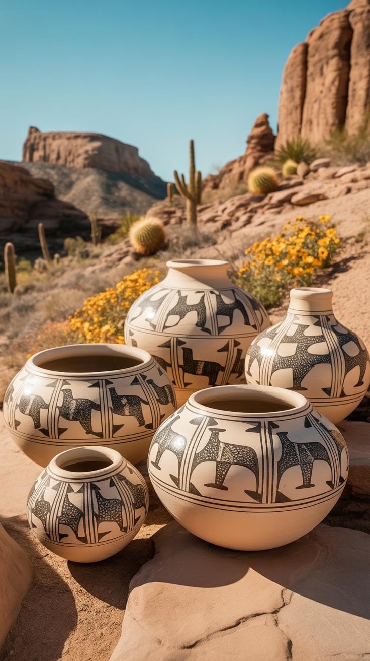 The Mogollon culture flourished across the American Southwest, particularly in what is now New Mexico and Arizona, leaving behind remarkable ancient pottery stories etched in black-on-white designs. The Mimbres people, a branch of the Mogollon tradition, created distinctive bowls featuring intricate geometric patterns that reflected their sophisticated understanding of symmetry and mathematical precision. These vessels showcase bold linear designs, interlocking shapes, and carefully balanced compositions that speak to a civilization deeply connected to their environment and cosmological beliefs.