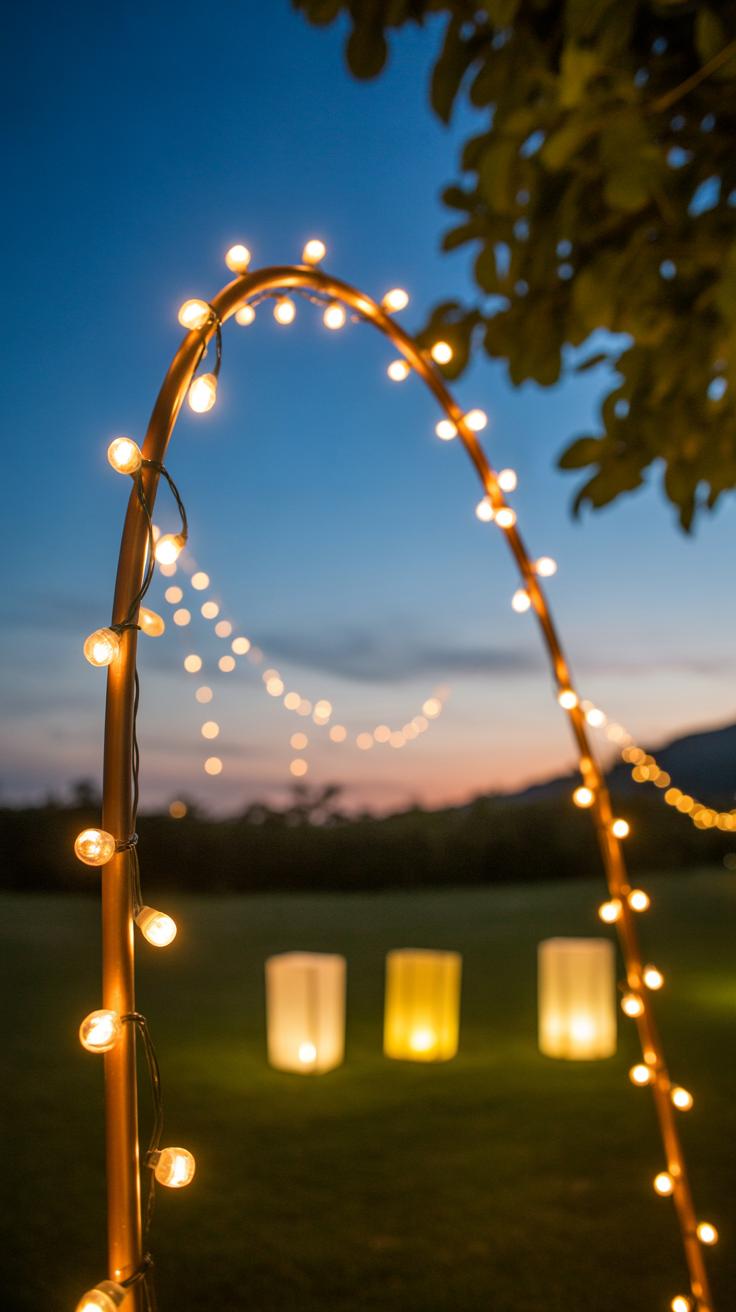 Lights—especially fairy lights—can transform your arch as the day turns to evening. Battery-operated or solar-powered strings are inexpensive and reusable, though you’ll want to test durability if rain is possible. Plus, they give a subtle glow that’s hard to match without spending a lot on candles or lanterns.