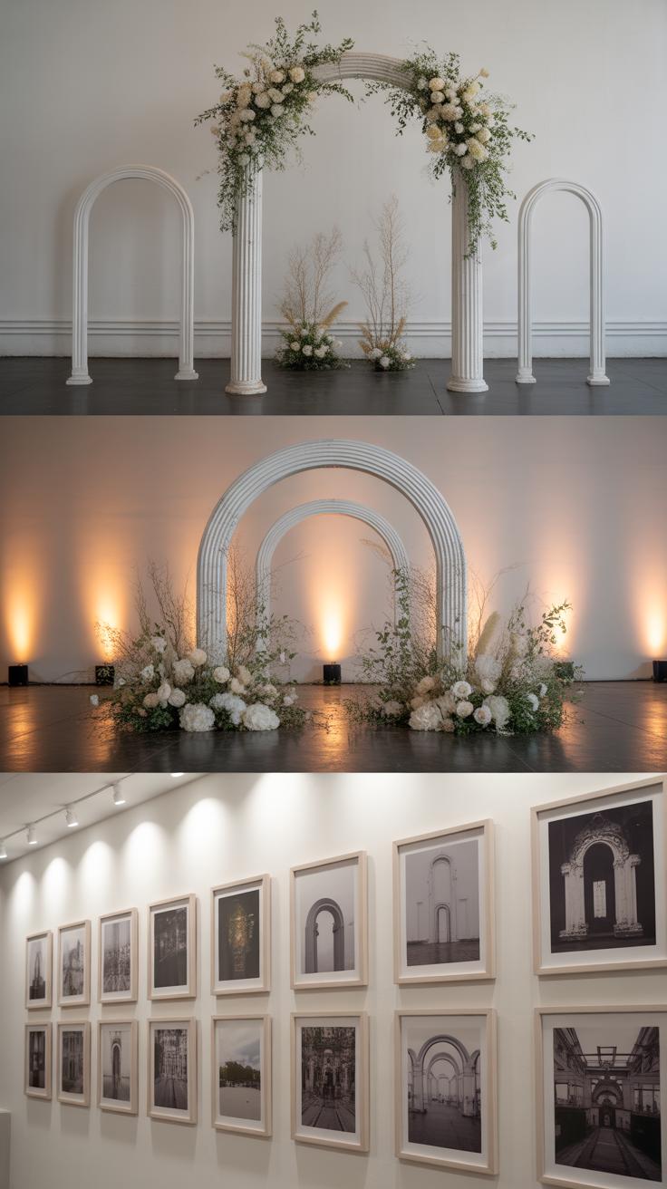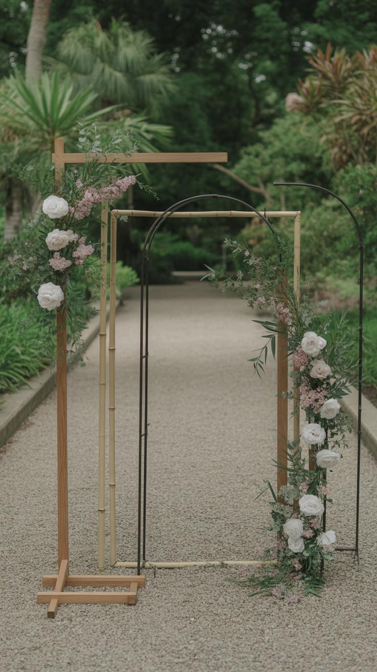 Less is more might sound overused, but here it really applies. You can almost feel the emphasis on form and space itself. The arch structure might be sleek metal or painted matte black or white to keep attention on the flowers’ line and shape. I’m not always sold on minimalist designs because they risk feeling cold, but when done with care, they provide a refreshing contrast to the traditional lushness of botanical decorations.