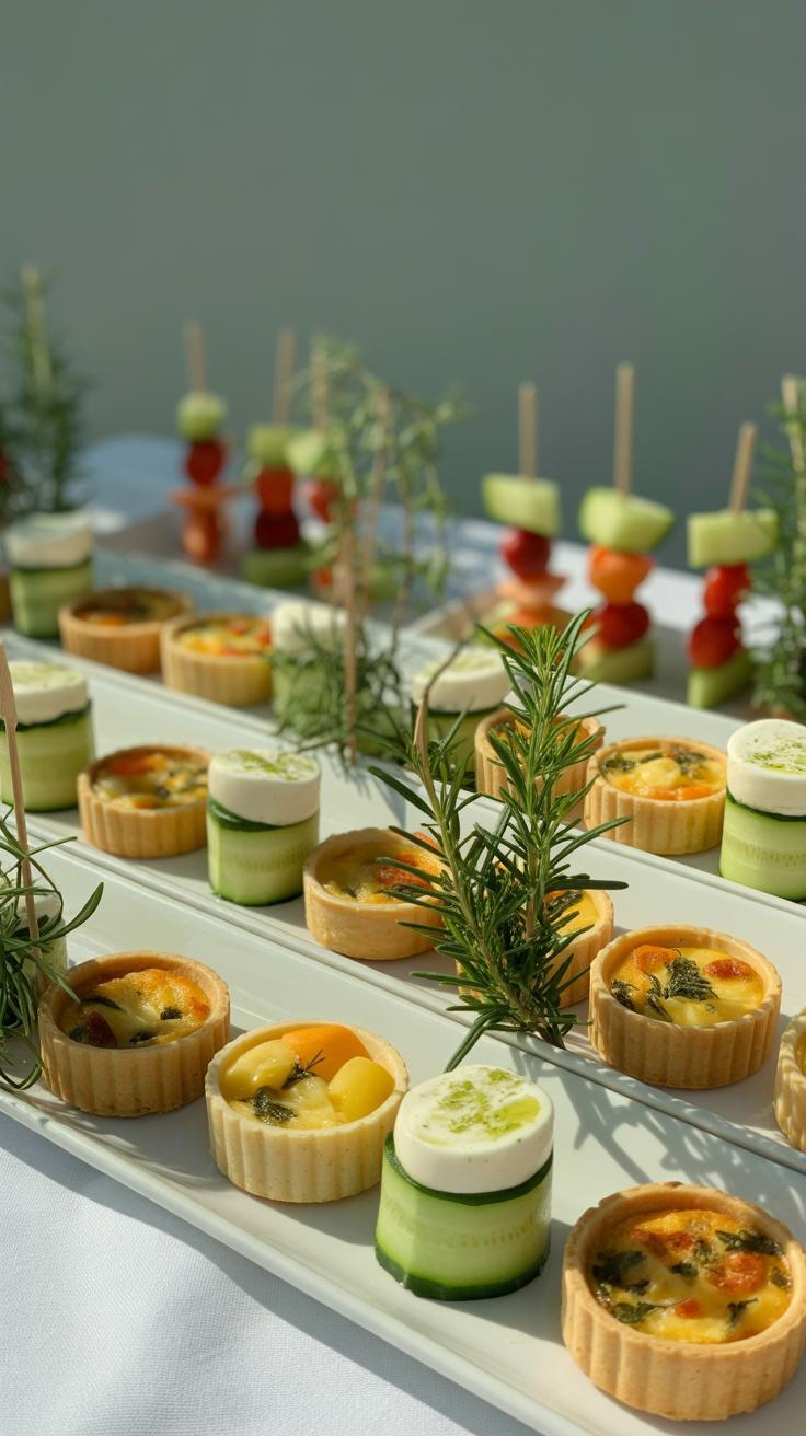 Simple picks like mini savory tarts, cucumber rounds topped with herbed cream cheese, or cherry tomatoes stuffed with mozzarella offer that light punch without filling everyone up too soon. I remember once serving little smoked salmon blinis. They disappeared faster than I expected—and I think it was because they were just the right size and packed a bite of flavor.