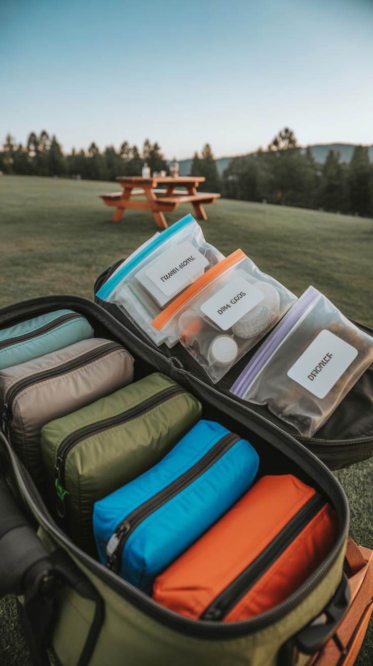 Packing a car or RV gives you more flexibility but it can turn chaotic fast. Use clear bins or stackable boxes to group items — one for food, one for sleeping gear, one for cooking supplies. Place the things you’ll want first near the door or on top, so you’re not digging around the entire trip.
