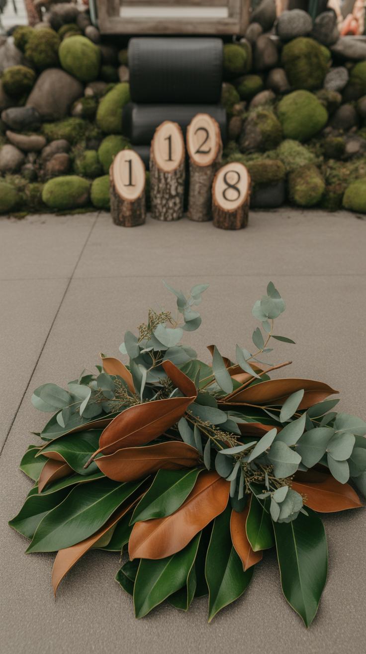 Natural items beyond plants can also blend surprisingly well with greenery. Imagine placing smooth river stones along the aisle for an earthy touch or using thin slices of wood as signage or candle holders. Moss is another option; it adds softness—both visually and physically—and can be nestled at the base of arrangements. That said, wood pieces can sometimes feel a bit rustic, so consider how they pair with your overall theme. The key is balance: enough to feel organic but not so much that the space feels crowded or mismatched.