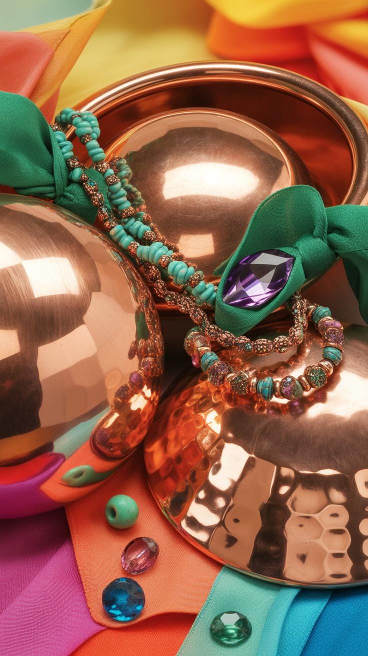 Mixing metals was a popular trend during the Victorian era and the Arts and Crafts movement. Using both copper and silver provides a striking visual balance. This bimetallic approach makes copper jewelry making feel more expensive. You can use silver solder or silver beads to accent your copper wire bracelets. The cool silver tones highlight the red glow of the copper parts beautifully.