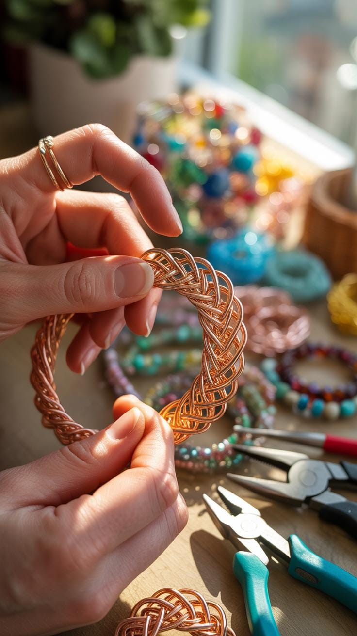 Beginner copper jewelry makers often start with this style because it requires few tools. You only need a thin wire and a sturdy stick to begin making copper jewelry. After you finish the weave, you pull the wire through a draw plate to make it thin and smooth. This step turns a bulky mesh into sleek copper wire bracelets. Learning how to make copper jewelry this way connects you to the past.