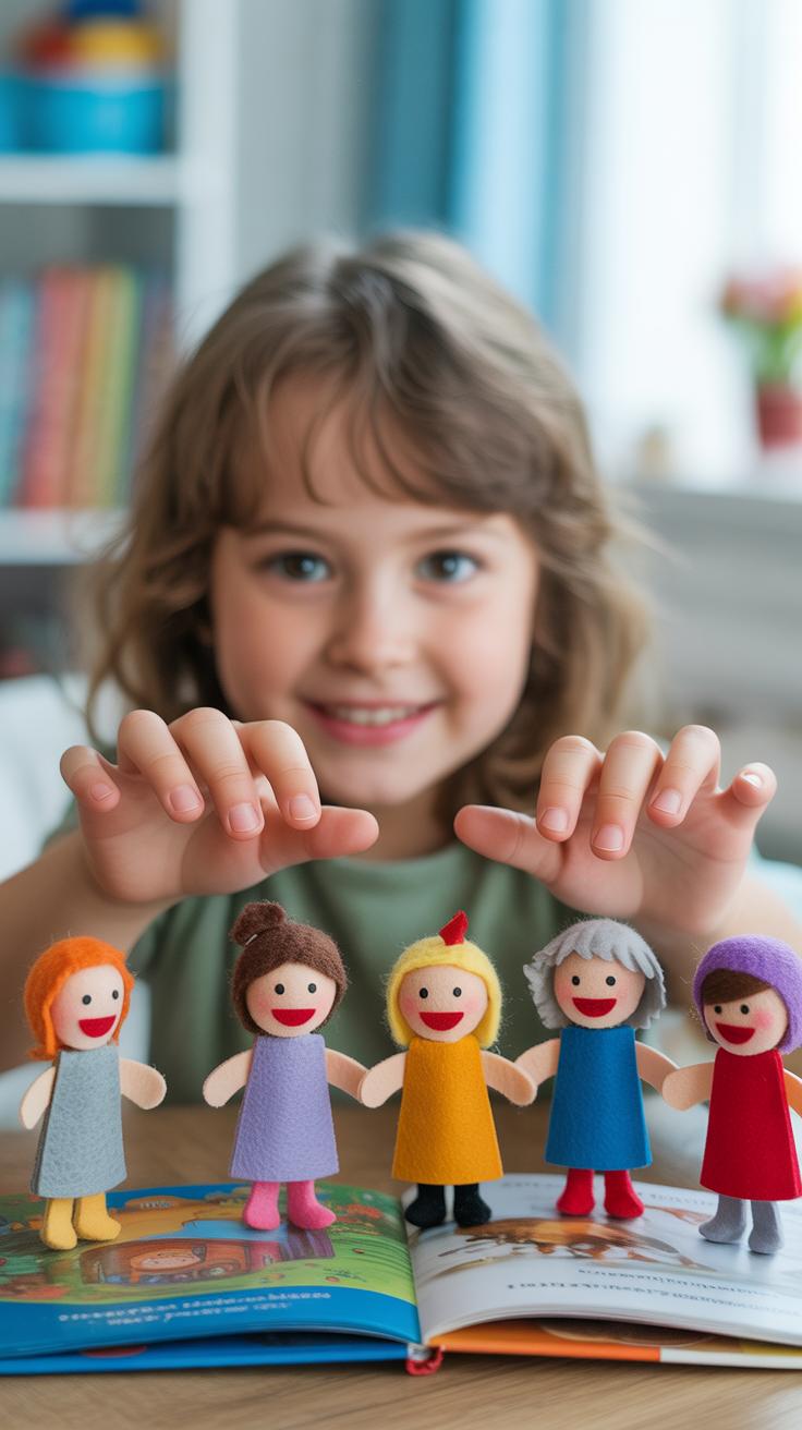 Once your puppets are ready, the real magic begins. Encourage kids to invent stories, giving each character a voice and background. Puppets invite shy kids to express ideas they might not say aloud otherwise. Stick puppets work well here too—just tape paper faces or felt shapes onto craft sticks, and you’ve got simple handheld puppets.