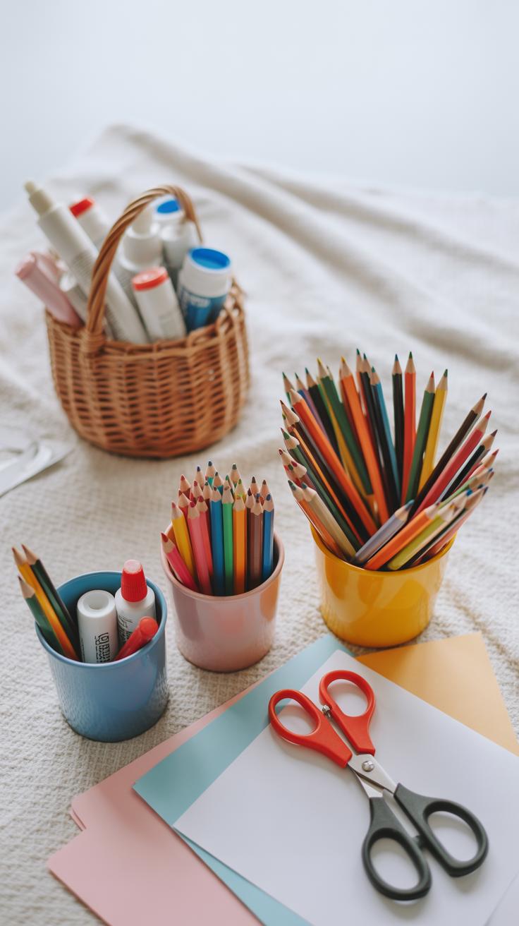 For cleanup, a wipeable surface or a washable tablecloth makes life easier. Having a small trash bin nearby saves time and stress. Overall, this setup invites kids to start crafting whenever the mood hits, which is pretty much all you want on a rainy day.