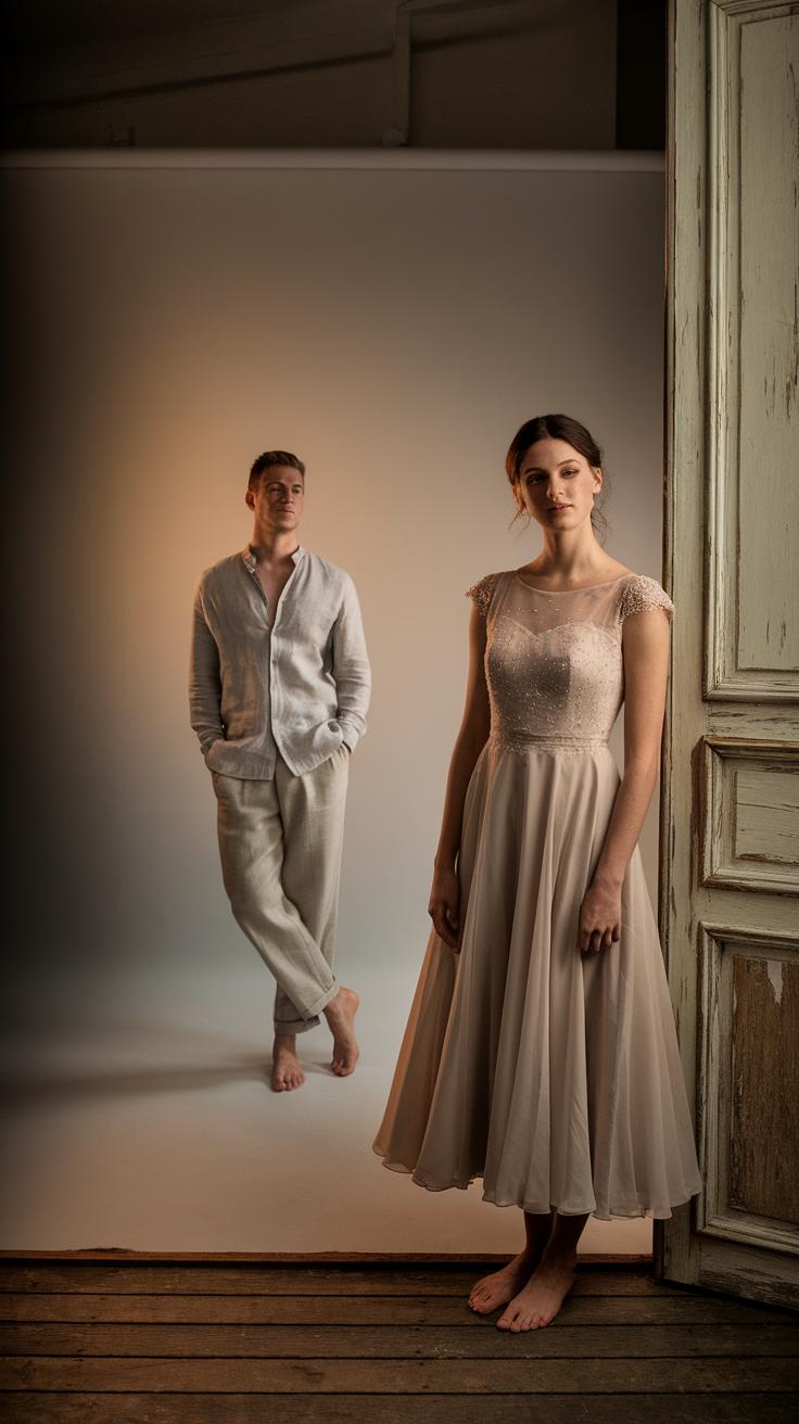 For smaller weddings, the bride can consider tea-length wedding dresses, which combine charm and ease of wear. A flowing skirt or wrap dress offers freedom of movement and keeps things light. The groom might ditch the traditional tuxedo for a tailored suit in a soft fabric, like linen or lightweight wool. This keeps the look sharp without stiffness.