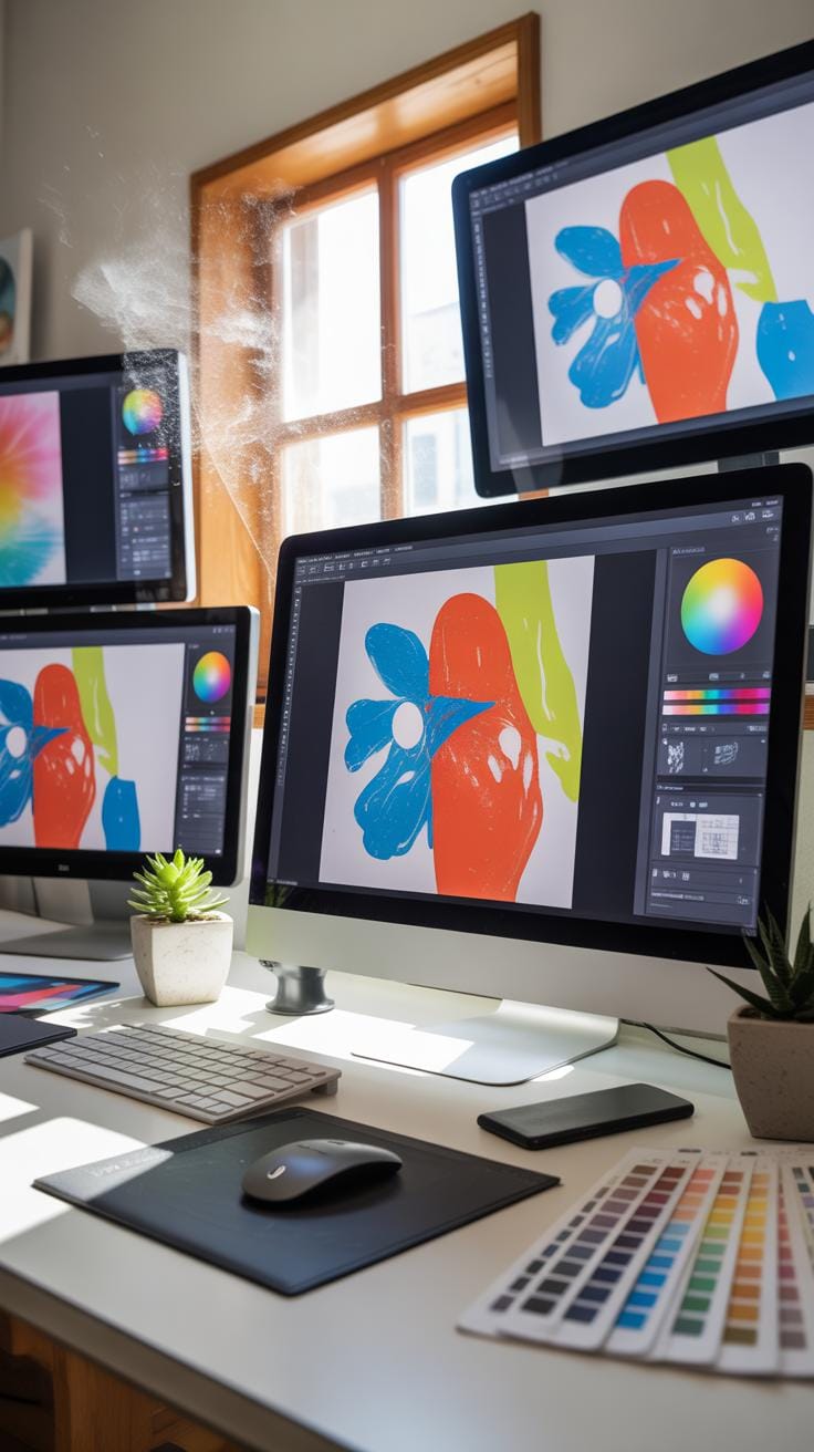 - Adobe Photoshop for detailed image editing, photo manipulation, and layout work. Many swear by it, though I think it can feel a bit complicated for beginners.