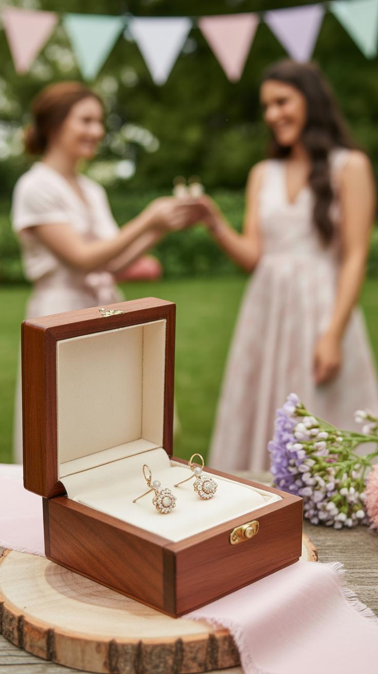 Giving the earrings can be much more than just handing over a gift. It’s an occasion, a chance for connection and a moment to pause amid the chaos of planning and excitement. Maybe gather your bridal party for a morning coffee or evening toast, and then present the earrings one by one. Watch their reactions — quiet smiles, surprise, maybe even a little gasp — they’re genuine moments that linger.