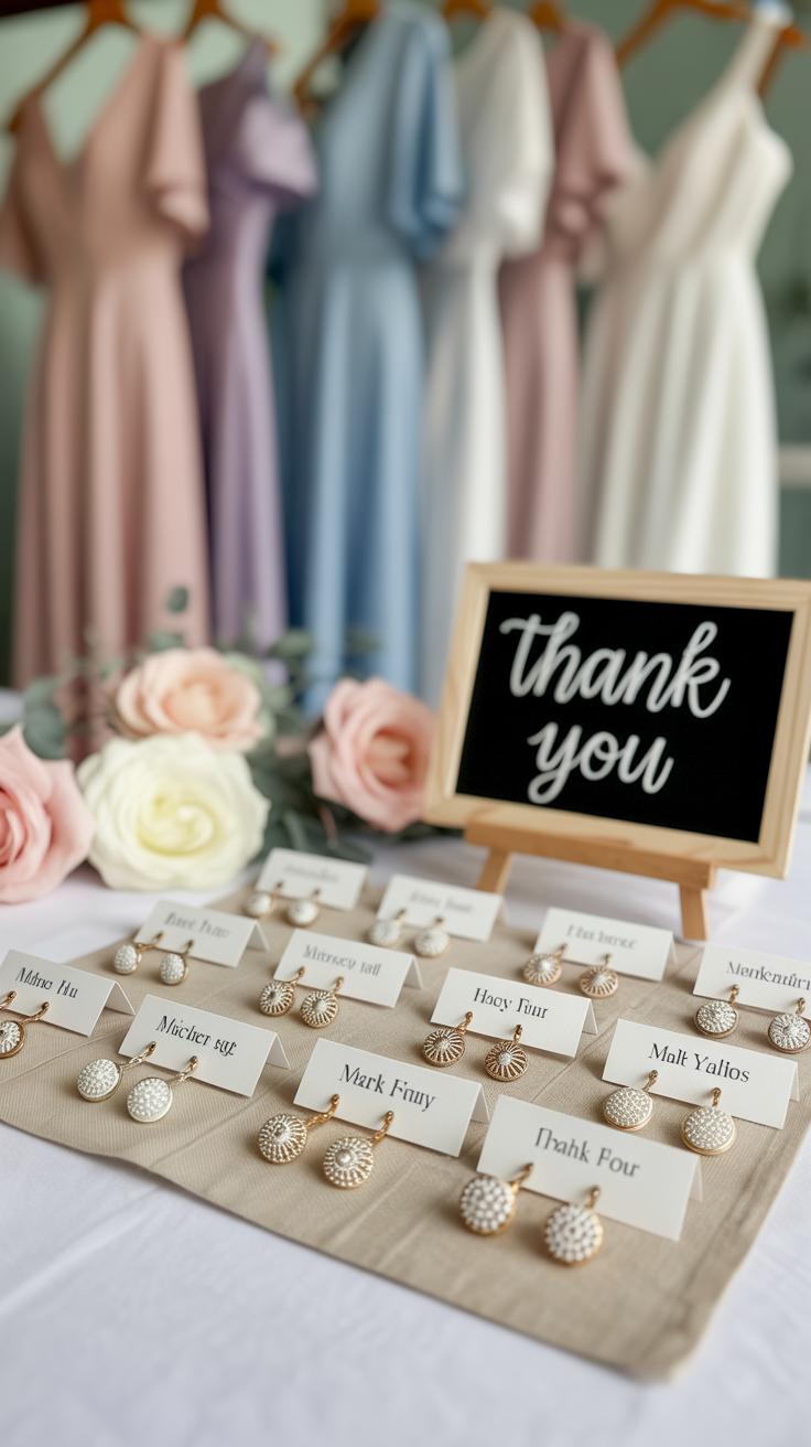 You could also share a brief story behind the design or how you made them. Sometimes, that personal detail makes all the difference, turning a pretty accessory into something meaningful. Alternatively, placing the earrings on their dressing room mirrors or at their place settings at rehearsal dinners adds an element of surprise and thoughtfulness.
