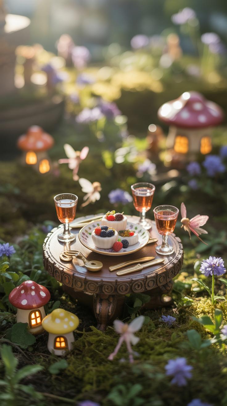 Miniature fairy details really bring things alive. Placing tiny fairy houses, figurines, and toadstools throughout the party area gives guests moments of discovery. It doesn’t take much: a few well-placed items near mossy stones or inside small clusters of flowers can create little fairy nooks. But, honestly, trying to spread too many around can make the scene feel busy rather than magical.