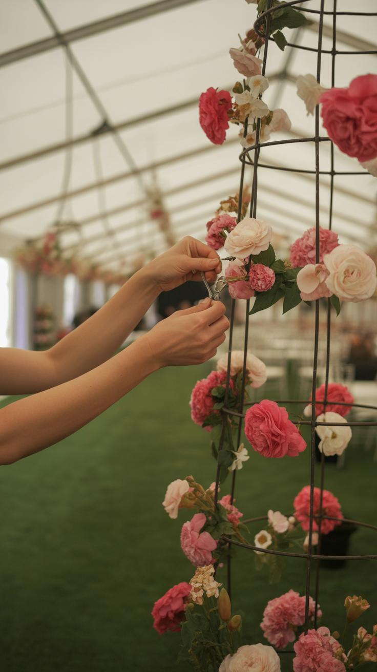 For safety, make sure the whole structure is stable before decorating—if it’s top-heavy, it might tip. You might find yourself adjusting as you go, which isn’t a bad thing; sometimes trial and error brings better results. Gluing is helpful for artificial blooms, but fresh flowers stay best anchored through foam. Be patient—it might take time to get that natural, full effect.