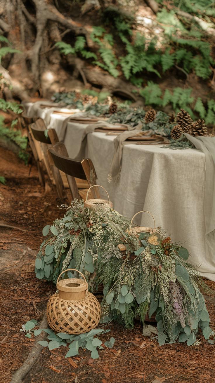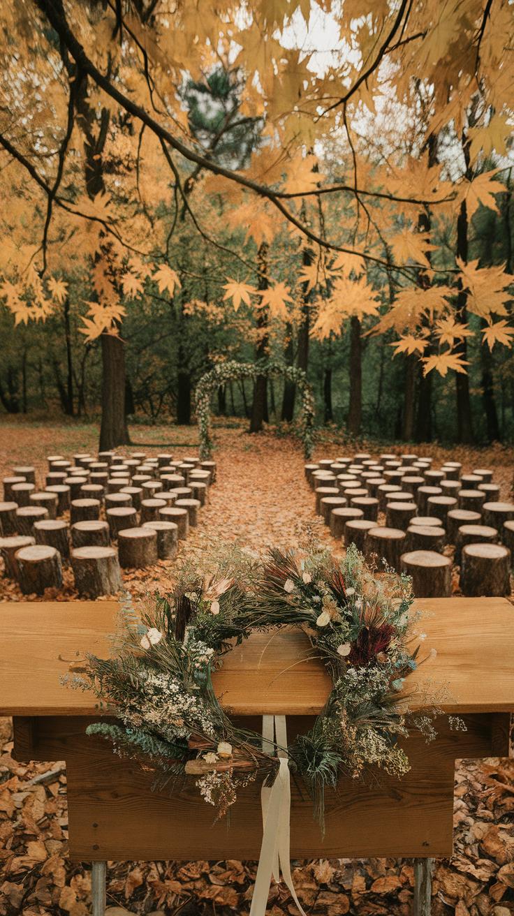 Ask yourself how you can make your ceremony feel like a true part of the forest. Can the altar be placed near a large tree? Could a natural clearing act as your aisle? Using raw, simple materials invites the forest inside your celebration, making your wedding feel honest and connected. These choices create a calming, authentic environment that reflects your love for nature and enhances the special moment you share.