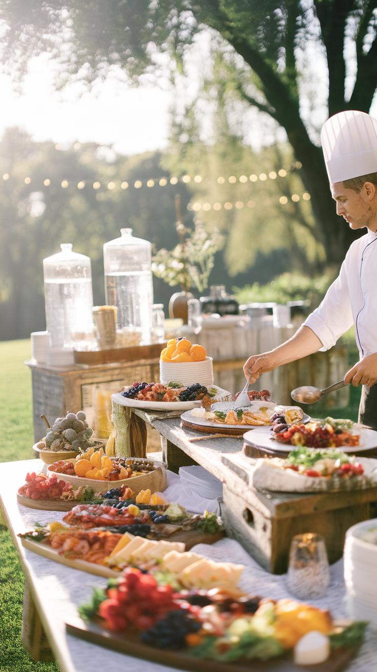 Consider how easy it will be to serve and eat outdoors. Finger foods or buffet-style meals work well, allowing guests to move freely without needing formal seating. Would your guests prefer familiar comfort foods or something unique that fits your wedding theme? This question can guide your menu decisions.