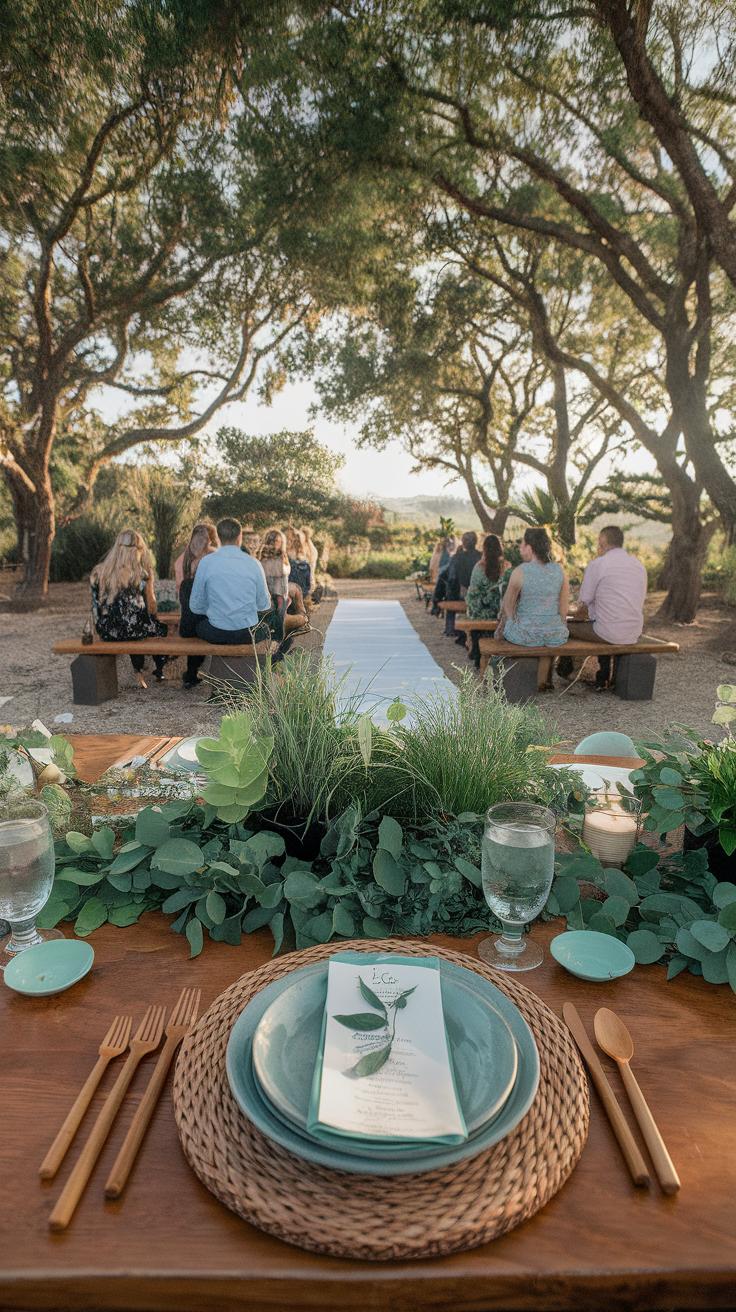 You can make your outdoor wedding eco-friendly by cutting down on waste. Choose reusable items like cloth napkins, real plates, and metal cutlery instead of disposable ones. These bring charm and cut trash after the event.
