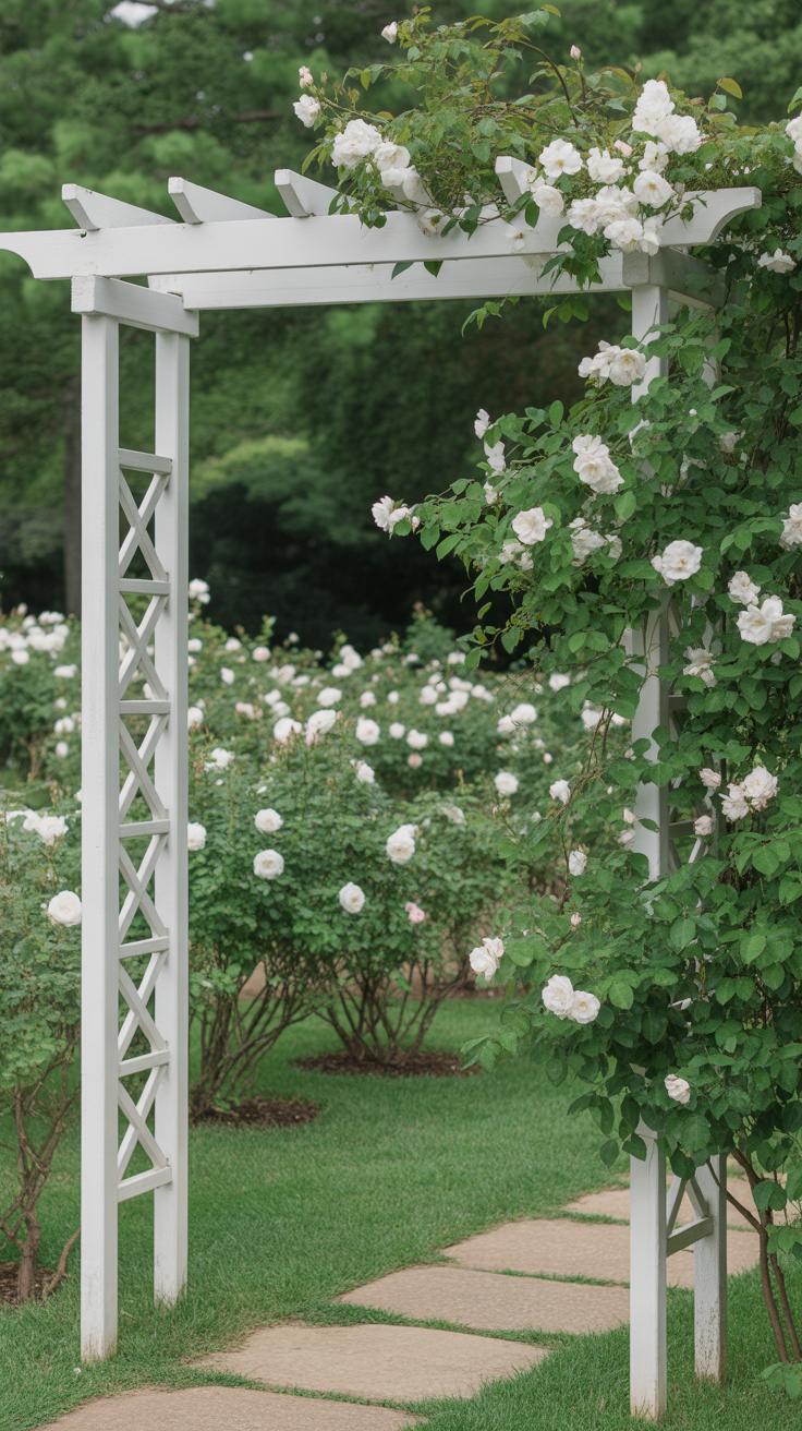 Adding fabric gives your arch softness and movement. Sheer curtains or flowing chiffon can frame the space nicely without blocking the view. You could wrap them loosely, letting gentle breezes catch the edges. That kind of delicacy pairs well with garden charm.
