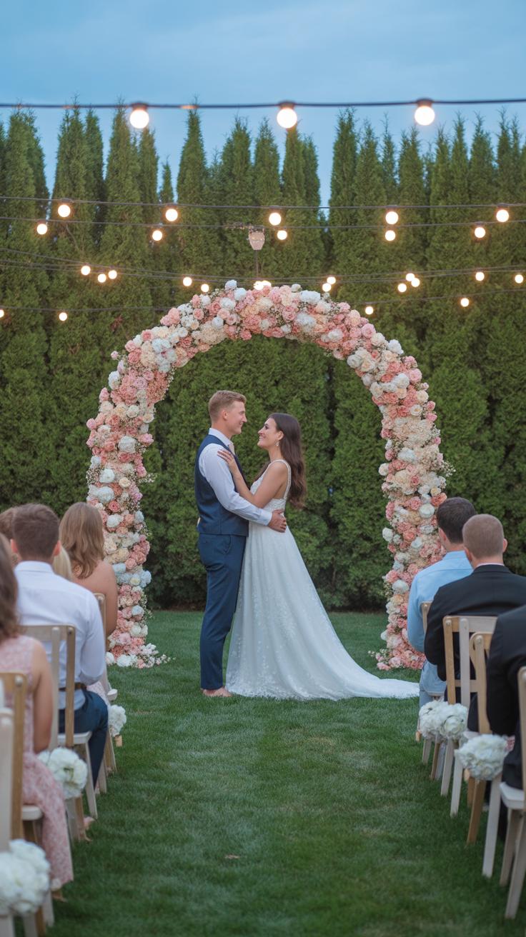 Consider seasonal blooms, too. They’re fresher and often less expensive. If your wedding is in spring, delicate cherry blossoms or tulips could work beautifully. For summer, sunflowers or peonies might add a cheerful vibe. The key is layering: cluster big blooms at focal points and let smaller buds trail off, so the arch looks full but not crowded. Sometimes, less is more, but other times, you want that wild, overflowing look—both can be stunning. It depends on your style.
