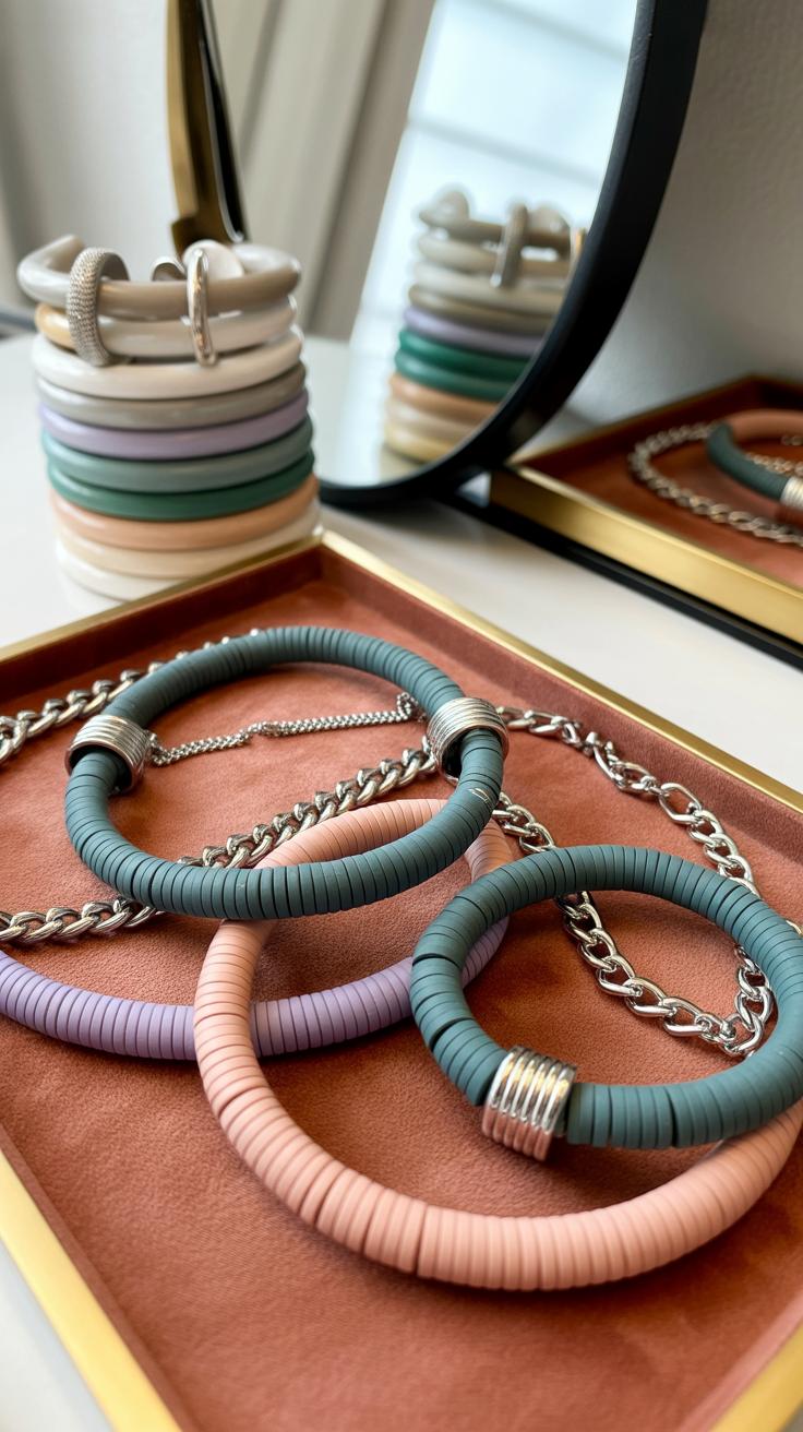 Layering isn’t just about stacking similar shapes or colors. Mixing textures like clay, beads, and fabric can give your look a curated, personal touch. Imagine a matte clay bracelet worn alongside a string of wooden beads and a soft fabric-wrapped bangle. All different, but the natural vibes connect.