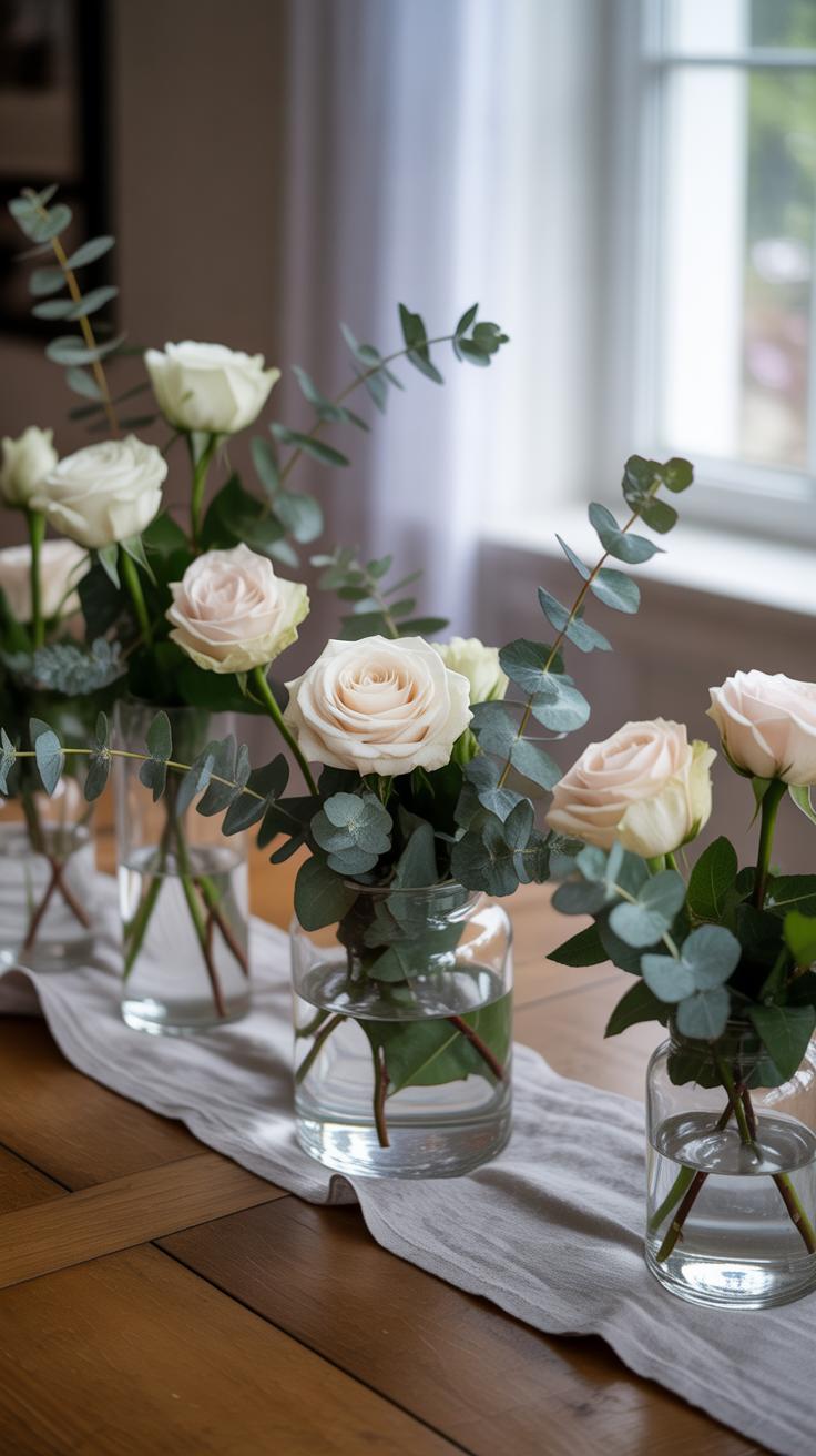Starting with just a few flowers and some greenery can surprise you. For instance, assembling loose bunches and placing them in several small vases offers a light, casual vibe that suits informal meals well. You don’t need fancy tools or floral foam—just snip and arrange.