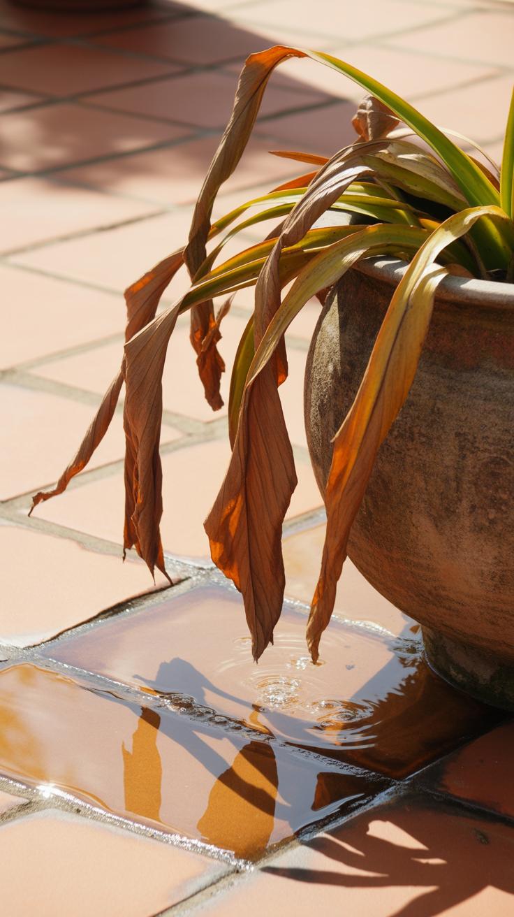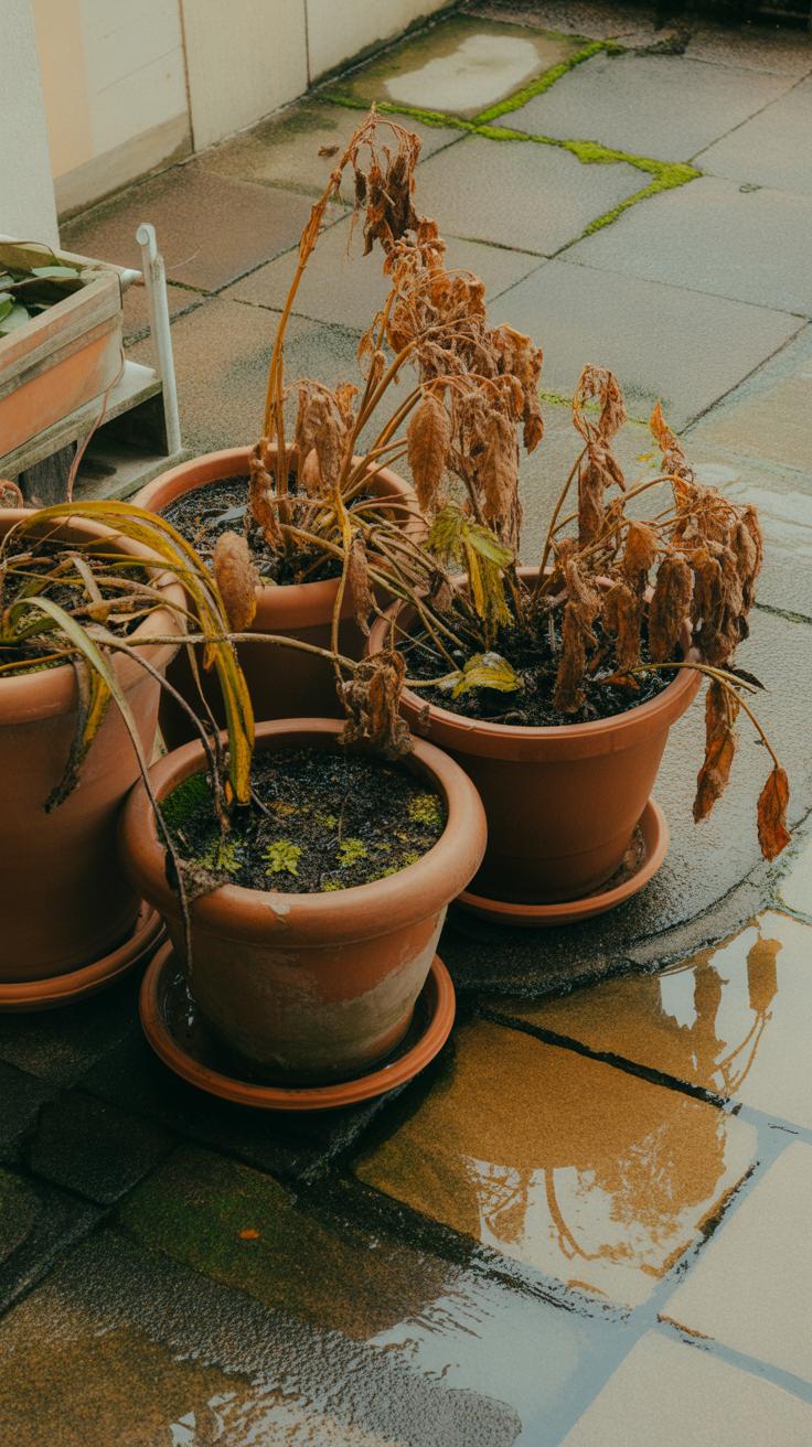 Watering container plants on your patio is trickier than it looks. Too much or too little can quickly throw your plants out of balance. Overwatering often shows itself through yellowing leaves that seem limp or suddenly wilt despite the soil feeling wet. Sometimes, you might notice a sour smell coming from the container – a sign of root rot taking hold beneath the surface. The roots drown, deprived of oxygen, and the plant struggles to pull anything up.