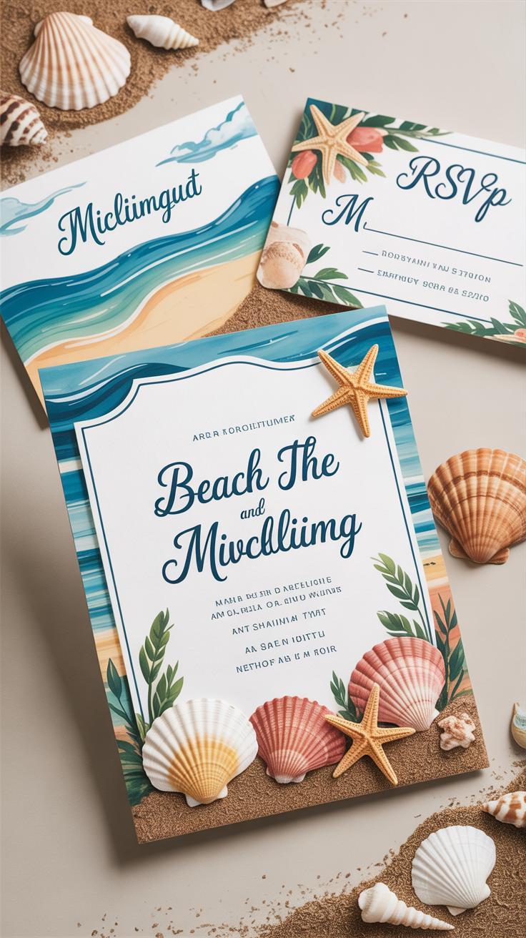 Using shell motifs in your wedding invitations can set a lovely tone right from the start. Printed shell patterns—like scallop edges, starfish silhouettes, or subtle sand textures—can bring a coastal vibe without overwhelming the design. Think about soft pastels or sandy neutrals paired with clean fonts to keep it elegant yet simple.