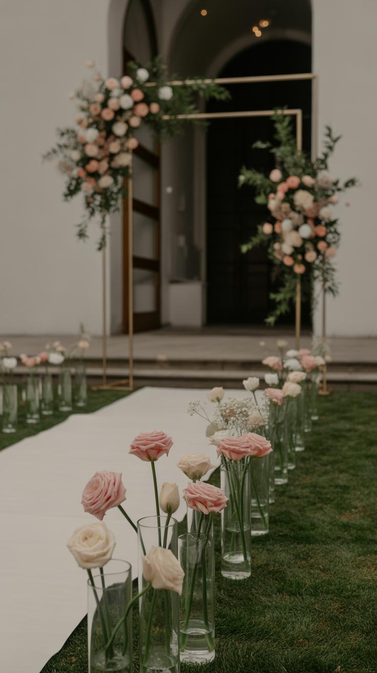 When styling a minimalist wedding arch, the goal is to enhance its simple beauty without crowding the space. It’s tempting to add lots of flowers or elaborate decorations, but less usually feels more. Think carefully about what you choose—each addition should serve a clear purpose and not overwhelm the clean lines.