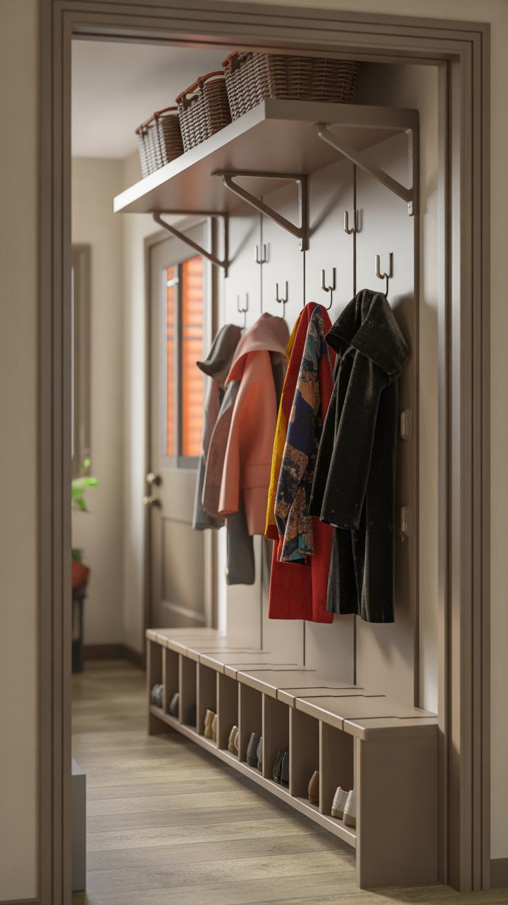 Hooks near the door are another easy way to keep keys, bags, or jackets in one spot. You might even try a small storage bench—great for sitting while putting on shoes and hiding scarves or gloves underneath. I’ve found benches with lift-up lids do double duty, though they can seem bulky at first glance.