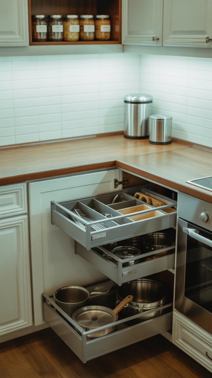 When floor space is scarce, look upwards. Hooks under cabinets or on walls can hold mugs, ladles, and even pots. Wall-mounted racks with shelves free up countertops and give tall items a home. Tall shelves in corners or above the fridge are great spots for rarely used equipment or bulk supplies. Pots and lids can hang on sturdy racks or be stored vertically in racks designed for lids—that part took me a bit to get used to, but it really cleared space in my lower cabinets.