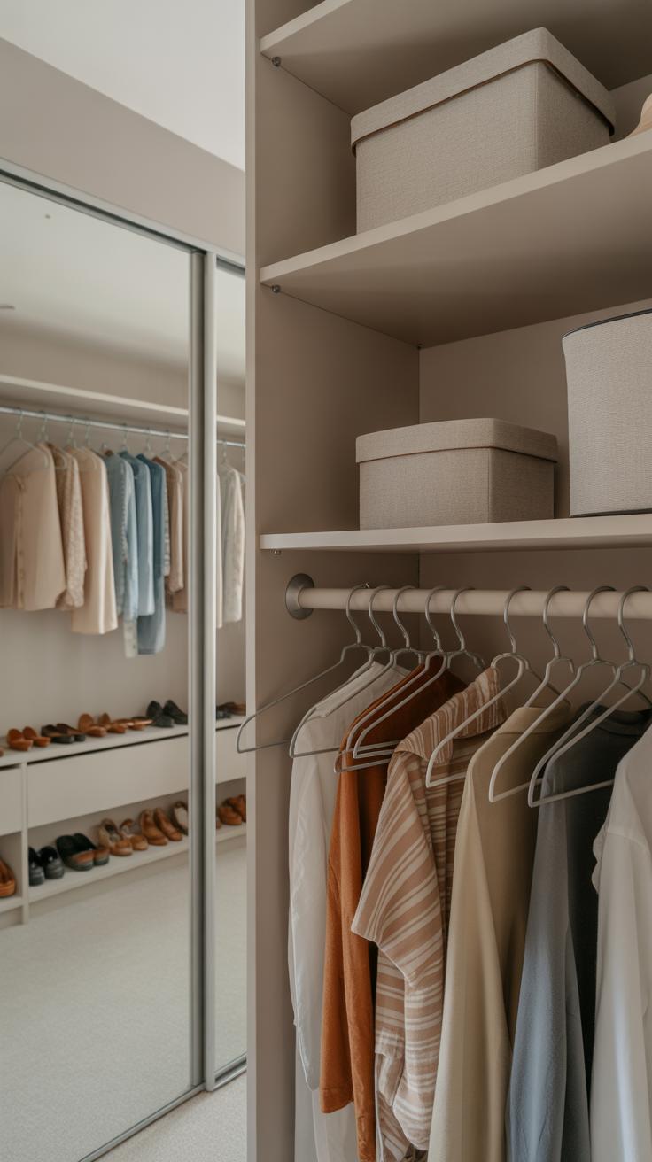 Dividing your closet by item type or season is more than just neatness; it can save time. Maybe keep work clothes in one area, casual wear in another. Seasonal separation is handy, too—store winter coats in higher or less reachable spots when it’s summer, then switch them back when the cold returns.