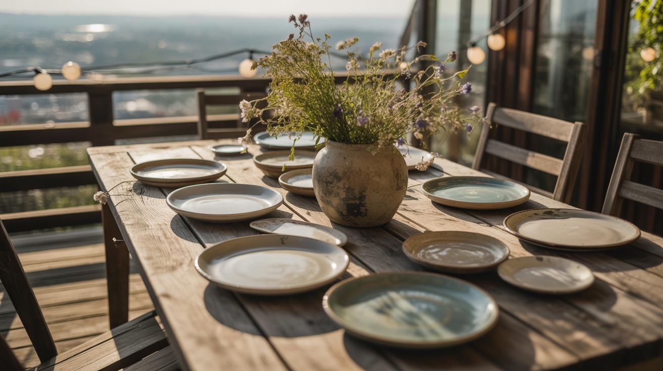 - Place settings: Keep plates and utensils tidy and minimal—no need for fancy chargers or multiple glasses if that’s too much. Maybe add a napkin with a simple tie or a sprig of greenery.