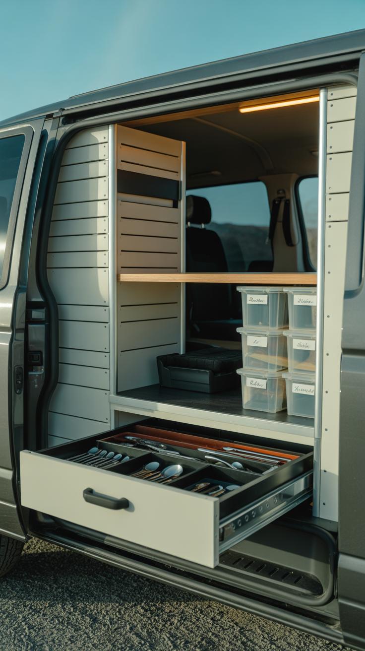 Creative compartments are another option. Custom-built nooks inside existing structures—like under seats or behind panels—allow you to stash gear you don’t need daily but want within reach. It’s almost like having secret drawers scattered throughout the van.