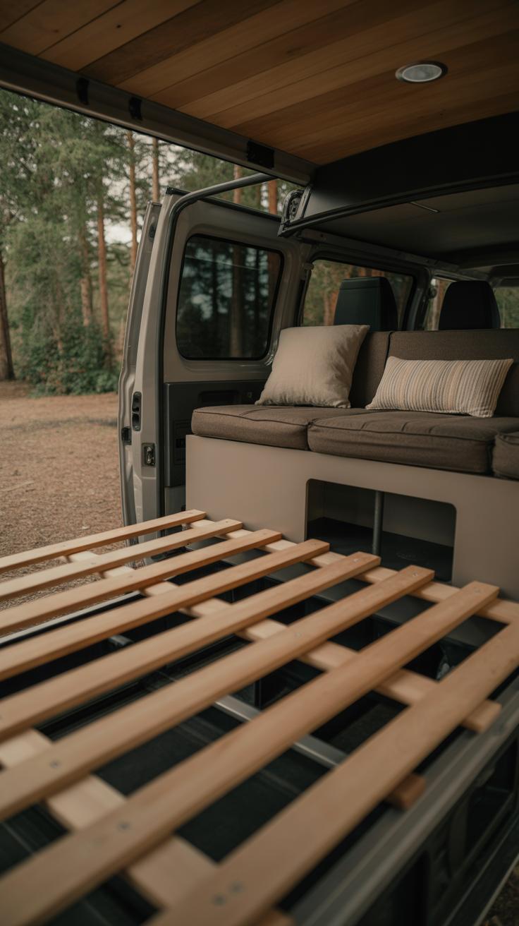 Starting with a basic bed frame, you want something straightforward but practical. A common approach is to build a platform using plywood and 2x4s or metal brackets for support. The frame can be as simple as a rectangular box that fits your van’s width and leaves some space underneath for storage. That under-bed area is handy—boxes, gear, or even a small drawer system can slide in there.