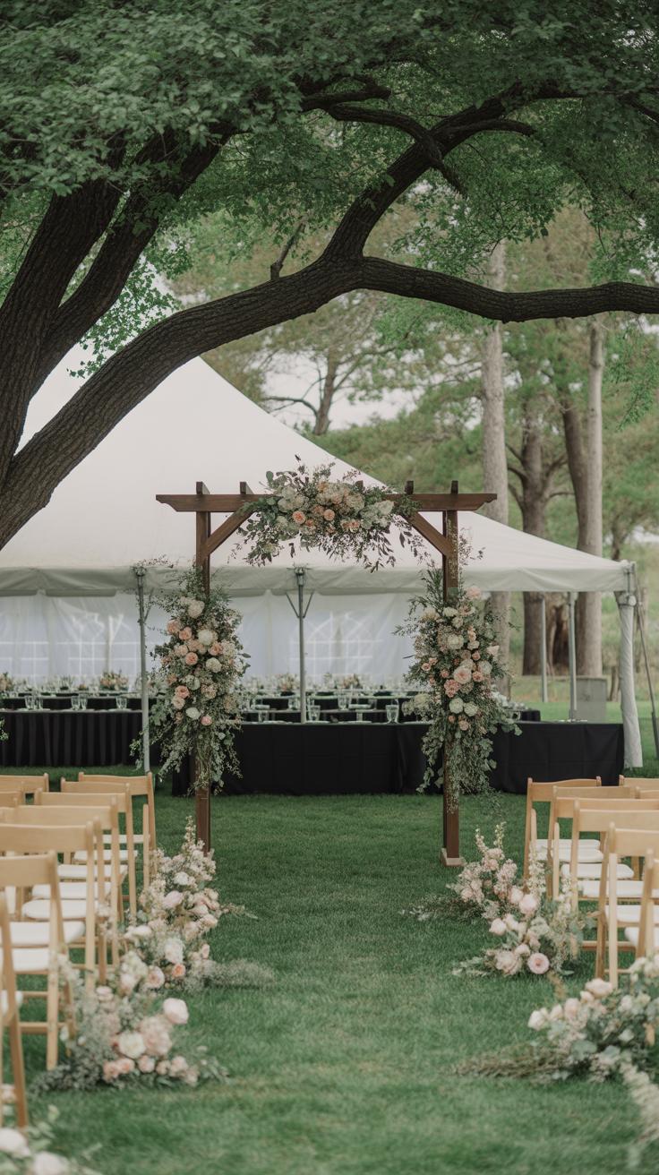 Floral-filled arches stand out by bringing bursts of color and softness to the greenery around. These arches are almost like art, heavily layered with fresh blooms and assorted greenery. The balance of flowers and leaves can change the whole mood—romantic, wild, or neat—depending on your choices. Keep in mind though, the flowers need careful selection to last outdoors, especially if your setting is warm or sunny.