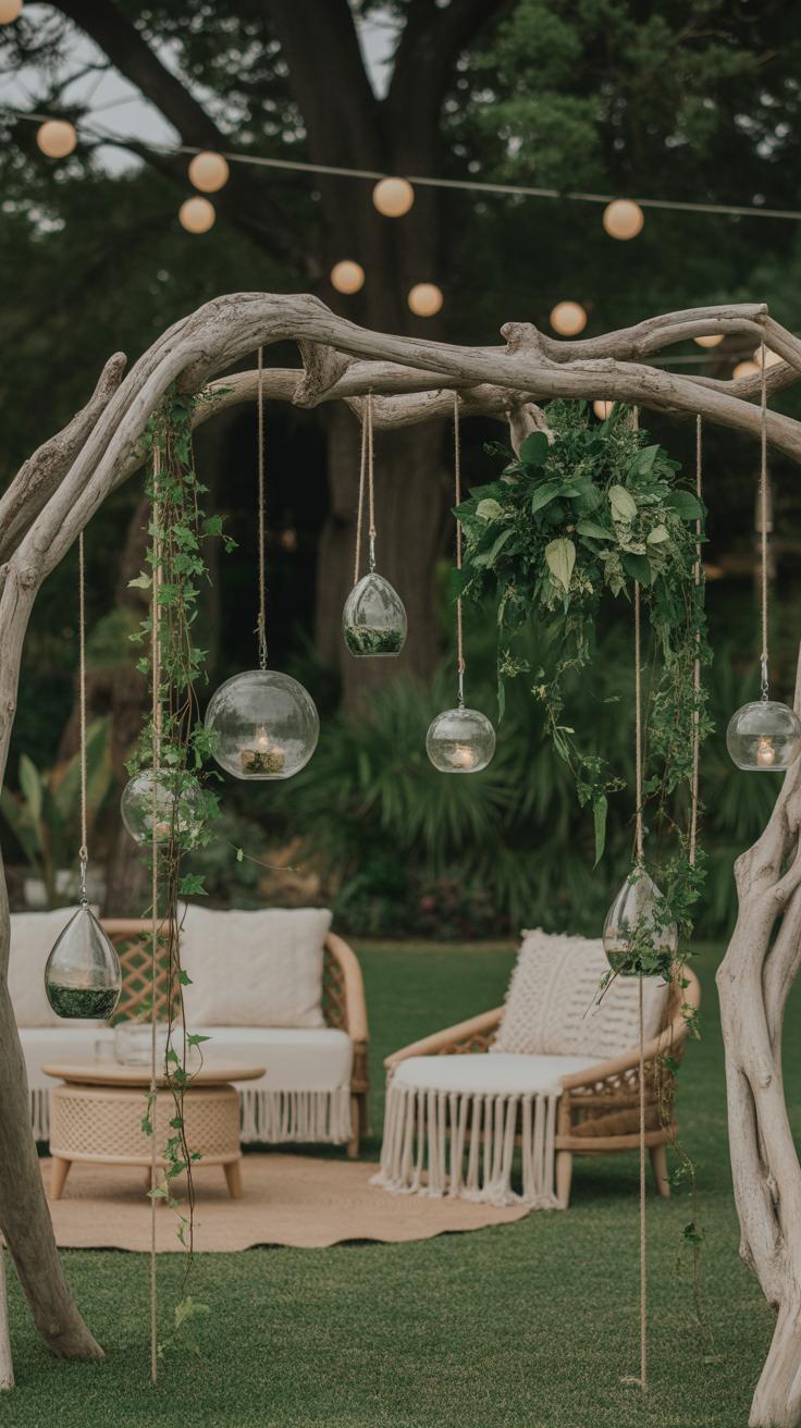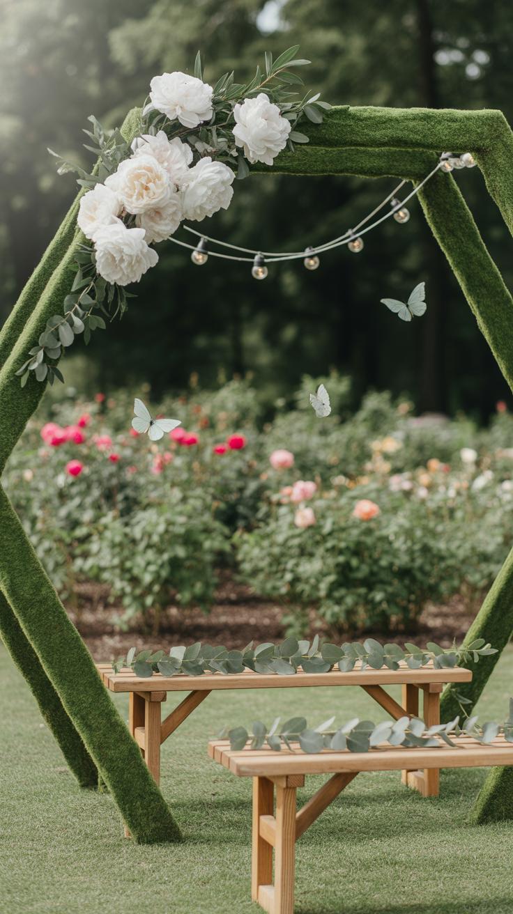 There’s more to a wedding arch than just flowers, especially in a botanical setting. Think about gentle fabric drapes that flutter slightly in the breeze — they add movement and a softness that flowers alone can’t always achieve. Fabrics like chiffon or lightweight linen work well. You might loosely wrap them around the frame or let them cascade down, creating a dreamy effect without overwhelming the natural greenery.