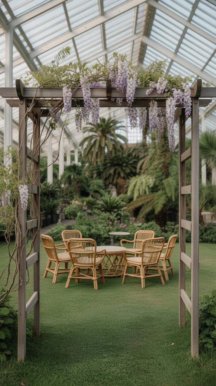 When thinking about wedding arches in a botanical setting, certain styles just keep coming to mind. Classic wooden arches top the list—there’s something about the simplicity and warmth of natural wood that pairs with the greenery around it. You might find that their raw, unpainted look brings a subtle rustic charm without overwhelming the flowers or plants nearby. It’s a design that almost feels timeless.