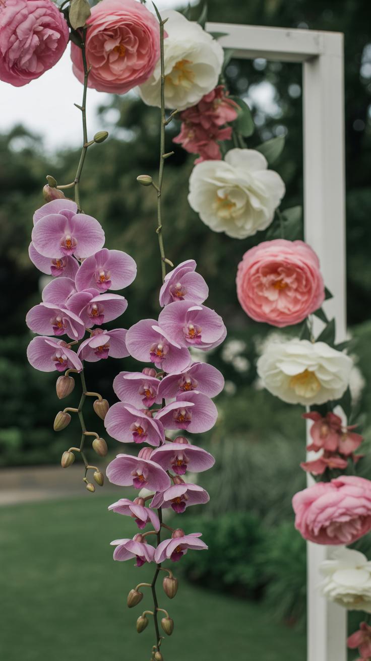 Artificial flowers avoid the freshness challenge entirely. They’re versatile and reusable, often easier on the budget, and available in any color imaginable. But they risk looking plastic or flat if chosen poorly. High-quality silk flowers work well, making the backdrop consistent and stress-free, especially for longer events or destination weddings.