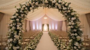 The style and size of your wedding venue play a huge role in deciding what kind of backdrop will work best. You can’t just pick one without thinking about the space around it. For example, a large ballroom calls for something grand, maybe a tall floral arch or a wide installation. But a cozy, intimate room might need something simpler and scaled down to avoid overwhelming the space.