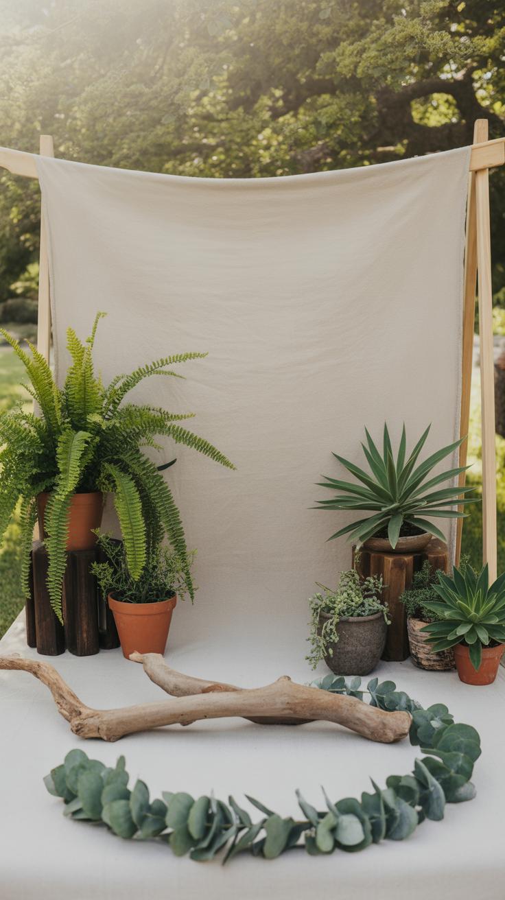 Bringing outdoor elements into your wedding background can help create a calm, inviting atmosphere. Wood and greenery, for example, add textures that feel honest and simple—nothing overly styled or forced. Think reclaimed wood panels or weathered crates stacked creatively behind your photo area. These introduce warmth without trying too hard.