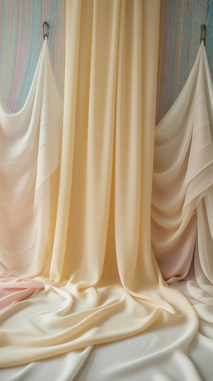 When choosing colors, it helps to think beyond just matching your palette. Fabrics in muted tones or pastels can soften stronger hues nearby, lending a more balanced look. For example, pale blush chiffon against a deep green backdrop can tone down what might otherwise feel harsh. You might even want to use shades that are close but not exact matches to create gentle contrasts, which add depth without distraction.