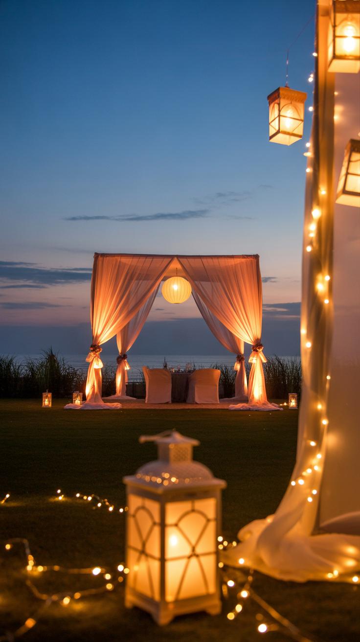 Lanterns offer a bit more presence. Placing them strategically can add depth and a sense of structure to your backdrop. I once saw lanterns clustered at different heights behind a couple’s sweetheart table, and it looked like the perfect mix of rustic and romantic.
