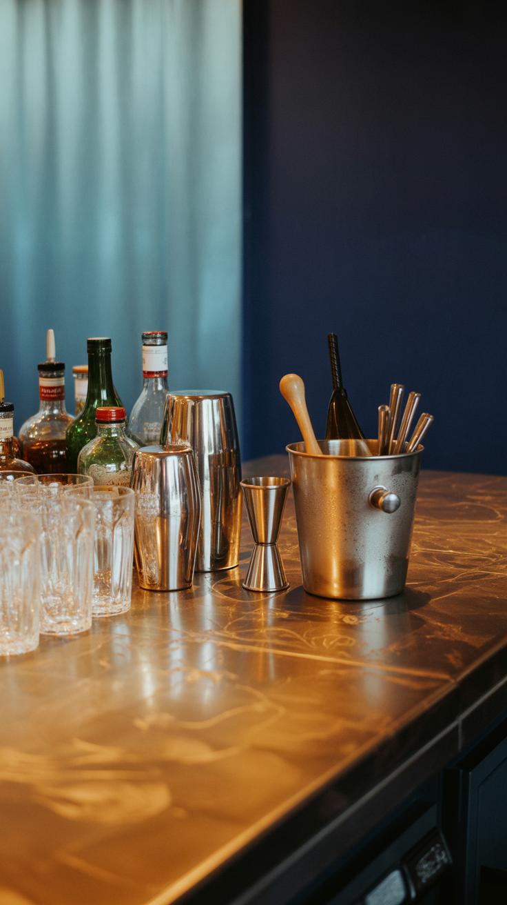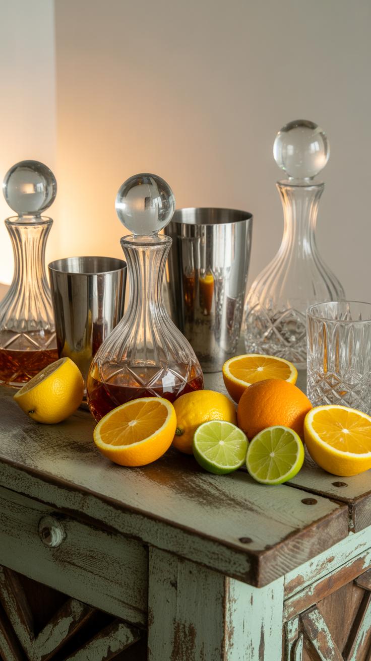 - Arrange all bottles, mixers, and garnishes logically—group by type.