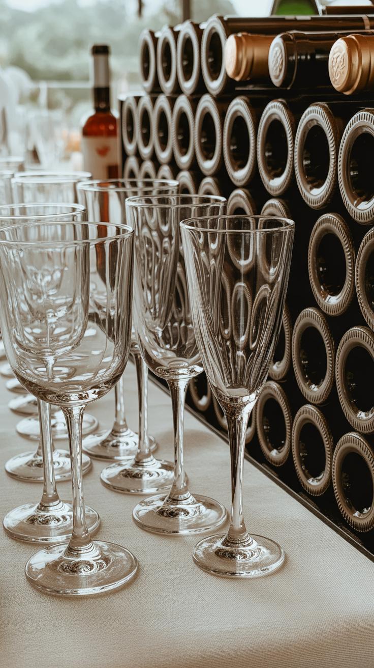 - Glassware sets, like wine glasses, champagne flutes, or cocktail glasses ($0.50 – $2 per piece)