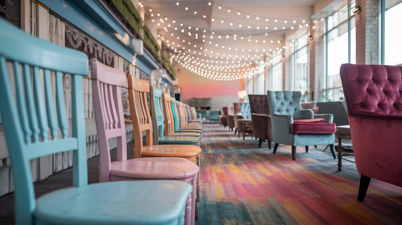 Vintage chairs bring charm and a sense of history to your wedding reception. Their craftsmanship and unique designs offer character few modern chairs can match. You can find these at flea markets, estate sales, or specialized vintage rental shops. When sourcing, look for chairs with sturdy frames and minimal damage to keep restoration manageable. Restoration might involve simple cleaning or reupholstering with fabric that matches your theme. Imagine an old wooden chair painted soft white to blend with a rustic garden wedding. These chairs connect your celebration to the past and add depth to the décor. How can you integrate a piece of history in your seating to make your reception truly memorable?