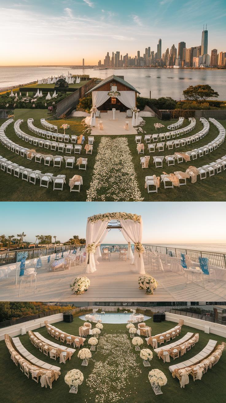 Beachside weddings present opportunities for unique decor such as driftwood arches or seashell centerpieces. Sand and wind are challenges here, so secure fixtures and sturdy materials work best. This venue invites light, airy decorations that flow with ocean breezes.