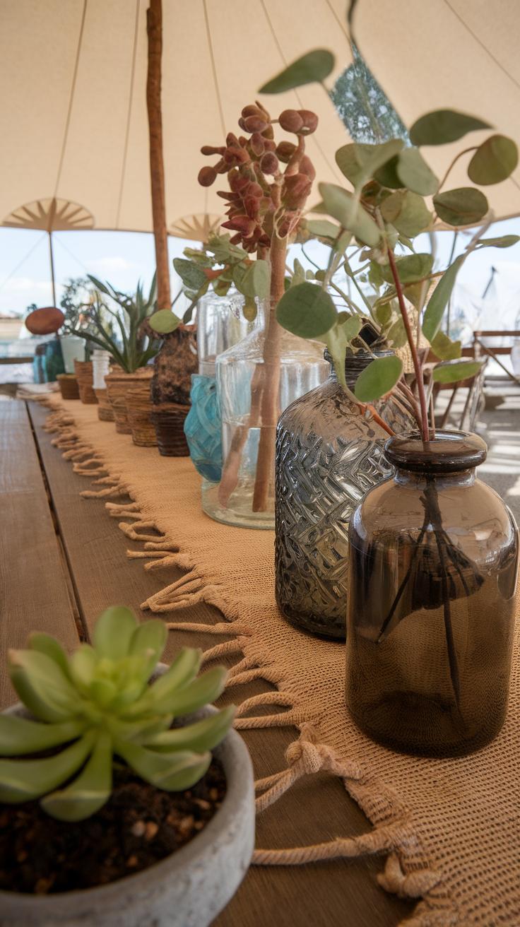 Try to match your decor with the surroundings. For example, use wooden signs and floral garlands in a garden, or light fabrics and sea glass in a beach setting. Let the environment support, not overshadow, your decorations. Ask yourself how each piece can interact with the natural space.