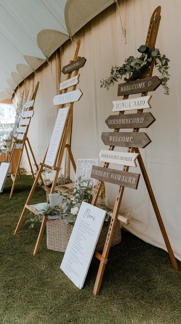 Signs and paper elements add both style and function to your wedding. Imagine guests arriving and immediately seeing a welcome sign that sets the tone for your celebration. Directional signs help visitors find key spots like the ceremony area or photo booth without confusion. Menus at each table inform guests of their meal choices while also blending with the overall design. Thank-you cards offering a personal touch can double as keepsakes for friends and family.