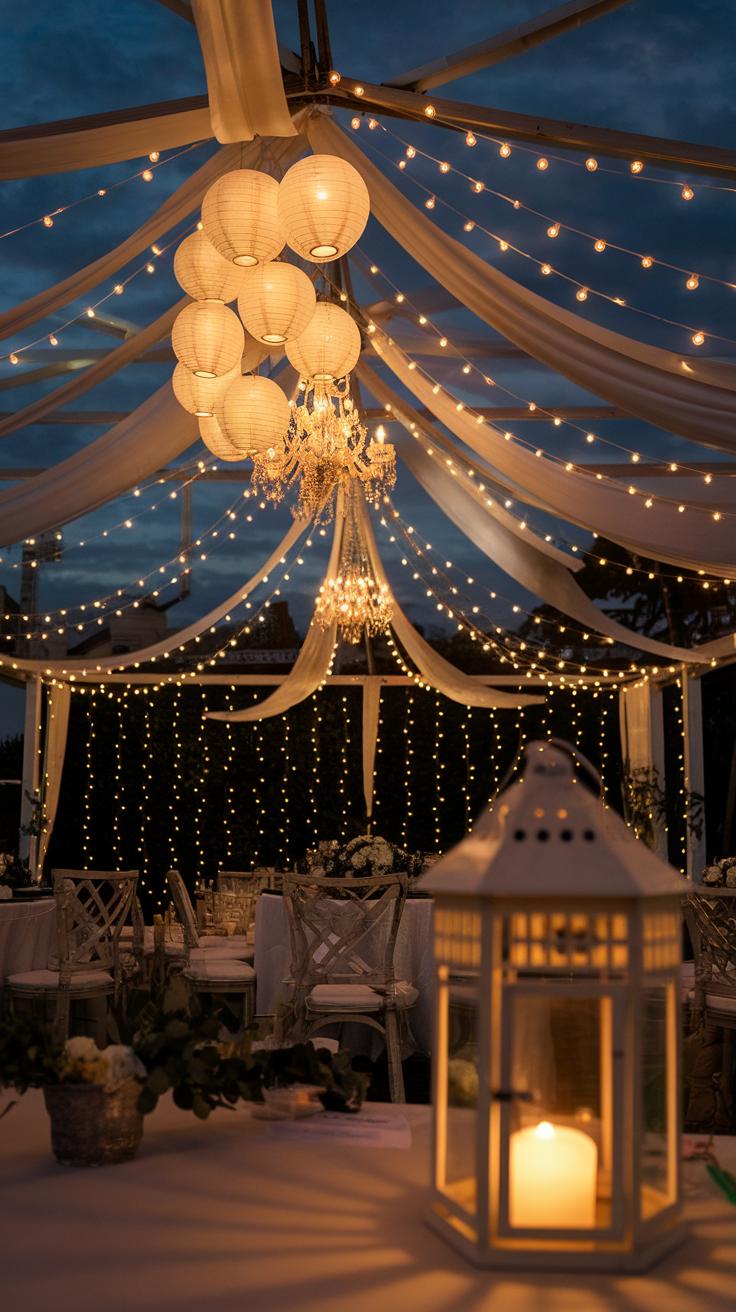 Consider your venue’s layout and overall theme when picking your lighting. Outdoor spaces suit string lights or lanterns that blend with nature, while indoor venues may benefit from candles or LED accents to highlight architectural features. Check for available power sources early to avoid last-minute issues. Battery-operated and solar-powered lights offer flexible options for locations without easy electricity access. Safety matters too; avoid trip hazards and keep flames away from flammable materials. Think about the mood you want to create. Soft, warm lights work well for intimate settings, while brighter LED options suit lively receptions. Will your lighting support photos and video quality? Your choices should balance style and function to enhance the entire event.