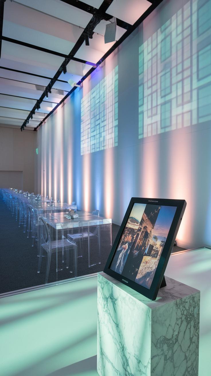 Digital screens do more than show images; they bring motion and life to your decor. Display slideshows of your relationship milestones during the reception, letting guests  share in your journey as they enjoy the event. Live video feeds allow those at larger venues or in a second room to stay connected to the ceremony or speeches in real time.