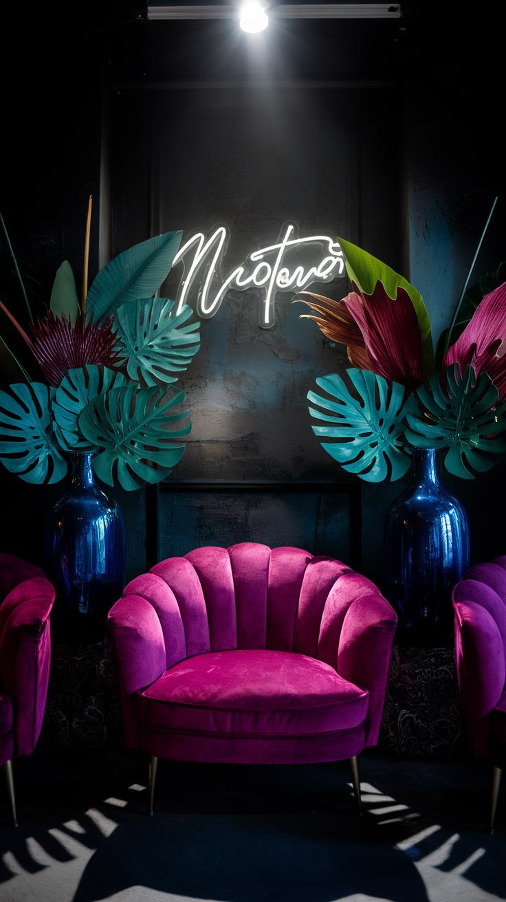 Balancing these bold elements with neutral tones is key to keeping the environment comfortable and elegant. Neutral colors like soft creams, grays, or light wood tones provide a calming background for your statement decor. Could a vibrant bouquet stand out even more against simple table linens? How might a bold backdrop look when accompanied by minimalist furniture? Asking questions like these will help you avoid overwhelming your guests while making your decor truly special.